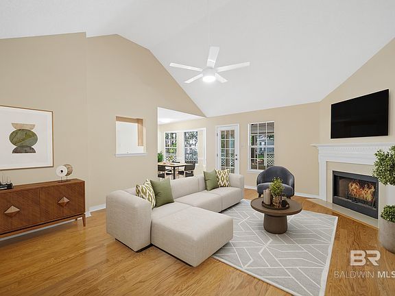 This Adorable 3 Bedroom 2 Bath Cottage with a Sun Room and Split Bedroom Plan looks like a new home! This home has recently been painted with new bath fixtures, new lights, and new ceiling fans added. The many updates include a new HVAC system in 2022, a new Fortified Roof in 2021, and new Plumbing in 2023. Most of the home has hardwood floors, with tile in the baths, and new Stainmaster Vinyl Planks added to the kitchen and closet in 2024! This home comes with all the Appliances including a Stackable Washer and Dryer! There is also a wonderful wraparound deck which makes this home so special. A small sprinkler system is located in the front yard. The Fireplace comes with an electric insert. Some photos are virtually staged. This wonderful Daphne subdivision has an 18-Hole Championship Golf Course, a Park, Disc Golf Course, 3 Swimming Pools, Tennis Courts, and Horse Stables. Home is located near one of the community pools. There is also a subdivision Women’s Club and a Garden Club. You can’t find a better location as being close to I-10, Restaurants, Grocery Stores, Medical Facilities and Shopping! All information provided is deemed reliable but not guaranteed. Buyer or buyer’s agent to verify all information.