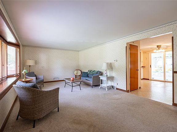 This ranch may be the one...especially if you love enjoying the beauty of your own picturesque yard from a fantastic glass-enclosed sunroom or outside patio! This lovingly-maintained home with great curb appeal includes a generously-sized living room, two bedrooms, a dining room that can be converted back to a third bedroom, and an oak eat-in kitchen. The partially-finished lower level offers five-room versatility, including a large family room with bar, dedicated office, half bath, workshop and laundry room. Outside, a custom wooden shed provides extra storage. Additional features include a high-efficiency furnace and central air. Make an appointment to see this gem right away.