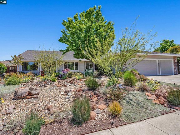 Stunning 180-degree views of Mt. Diablo and surrounding hills from this elegant single-story home. Once you walk into this open concept floor plan you are drawn straight thru to the yard and views. Light filled updated kitchen with quartz counters, stainless steel appliances, gas stove, apron sink, breakfast bar and open to the family room. Large formal dining room perfect for cozy dinners to large gatherings. Family room with contemporary electric fireplace. Formal living room. 4 bedrooms are generous in size and several with views. 5th bedroom is currently a craft room with closet turned into a storage area. Primary bedroom has wonderful views. Primary bathroom has dual sinks, walk in closet, tub and walk in shower. Secondary bathroom has dual sinks and shower over tub. Laundry room with folding counter. Half bath. Great storage throughout the home and in the 3-car garage. Professionally designed and planted front and back landscape. Several fruit & citrus trees, patios, raised deck and sunshade retractable awnings, perfect for entertaining and enjoying this beautiful private yard with no rear neighbors. Dana Hills community has a pool, club house, playground and miles of greenbelts and trails. Close to schools, downtown, restaurants, parks, library and miles of park trails.