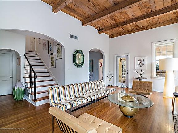 Beautiful Mediterranean South of Southern home on an oversize lot on lake block. Property features include open and bright living areas with high pecky cypress beamed ceilings, a fireplace and French Doors that open to views of the pool and gardens,. Off the dining room the updated kitchen offers custom cabinets, stainless appliances, a gas range and French doors that open to an outdoor dining area. The first-floor master suite offers beamed ceilings, a sitting room/den and large updated bathroom. Additional property features include a detached apartment with a kitchen and full bath and a utility area and a two bay garage.