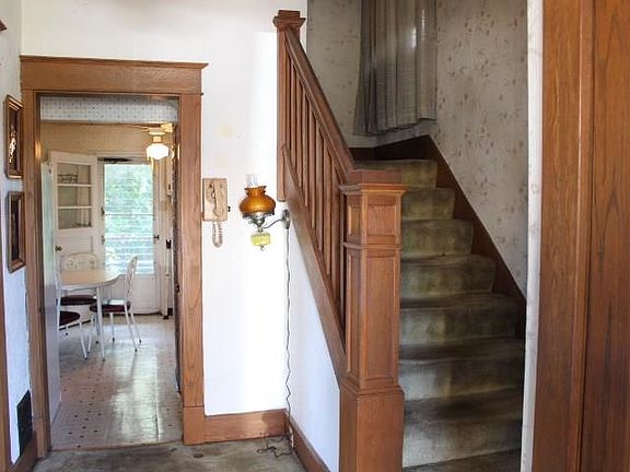 Adorable three bedroom two story on quiet end street with double useable lot and covered porch. Open entry with refinished woodwork. Formal living room and dining room. Eat-in-kitchen with gas stove and refrigerator. Access to covered rear porch overlooking wooded area. Very peaceful. Great solid home to make into a dream house. Washer & Dryer stay. Pittsburgh potty in basement.
