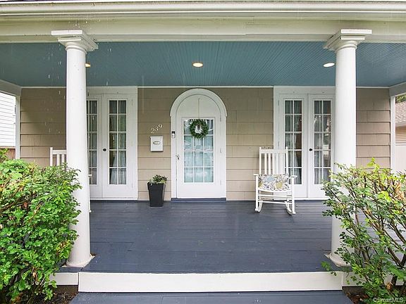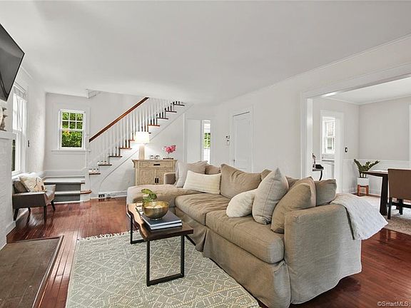 Convenience,Charm,Character! Picturesque Colonial combines the charm of yesteryear w/modern updates. Beautiful curb appeal, showcasing a wide-planked freshly painted porch, graceful archway door entrance, surrounded by lush landscaping, & white picket fence. Spacious Living rm w/cozy fireplace, french doors, dining room w/french doors, wainscotting, both rooms have beautiful hardwood floors. Kitchen has white cabinetry, SS appliances, tile backsplash, countertops are granite & butcherblock. A half bathroom & spacious mudroom leading to the patio complete the first floor. Upstairs offers a Main bedroom w/walk-in closet, hardwood floors. Two additional bedrooms are spacious, light, & bright w/hardwood floors. Upstairs full bath w/mosaic tile floors. Laundry is conveniently located is on the second floor. Finished walk-up attic, on the third floor, creates additional space & not included in the home's square footage. Backyard is level w/blooming gardens, landscaping, surround a bluestone patio w/custom-made bar, & a shed for storage. Recent improvements: Converted to Natural Gas, New furnace, New hot water tank, Electric amps increased to 200amps, Conversion switch for generator. Within walking distance to Fairfield's charming downtown, restaurants, amenities, train station, beaches. Award-winning Riverfield school district.