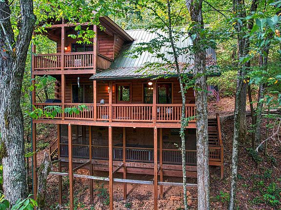 One of a kind Waterfall Cabin at Lake Buckhorn! Come enjoy the serene and private setting, offering Both Lake and Creek Frontage making this the perfect Fully Furnished Turn Key Mountain Cabin Rental w/ Lake Front Dock and Firepit! This 3br/2ba Cabin features a beautiful Great room with Stone Fireplace, fully equipped open-concept Kitchen, spacious Master w/private balcony. The Loft area has been en-closed to provide 3rd BR or den (can be re-opened). Full length porch w/tremendous views of lake & sounds of waterfalls from the creek. Lower level porch provides recreation area and an easy walk to the lakeside dock. Located conveniently between Blue Ridge and Ellijay enjoy all the activities both towns have to offer. Community amenities include, lake activities, hiking trails, wineries, upscale local restaurants, and downtown shopping, and is located at end of the road on Lake Buckhorn (15 acre spring fed lake) & noisy. Jones Creek. Very Successful Rental History! Call today to book your tour!