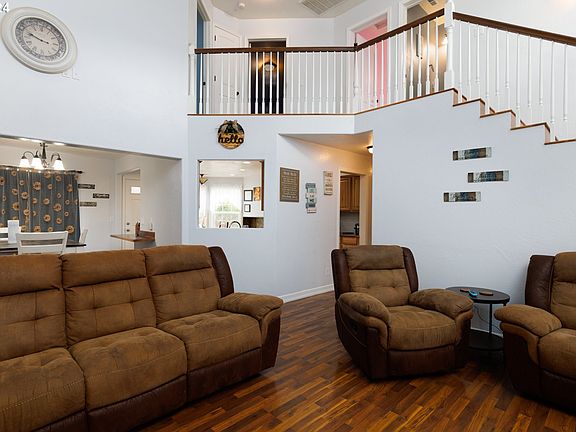 This 4 bedroom 2.5 bath 2011 home is tucked away at the end of a peaceful road. As you step inside, newer floors guide you through the open living space, warmed by a stunning river rock gas fireplace that reaches up toward the high ceilings. Relax in the main floor suite with spa like vibes with a walk in shower, jetted tub, and spacious closet. The kitchen features warm hickory cabinets, newer appliances and a charming eat in nook for casual meals. Outside is a fully fenced yard and back deck for BBQ'ing. A workshop with 220 amp service awaits and is in addition to the 2 car garage.