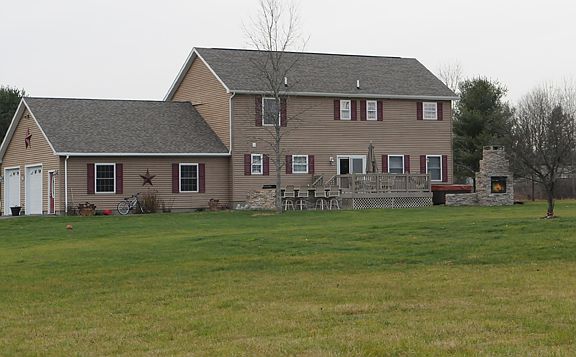 This home has much so offer! Perched on 11+ acres sits a family home with outdoor kitchen/dbl sided fireplace/Trex deck and hot tub. Inside boasts beautiful hardwood floors/high ceilings/spacious eat in kitchen with SS appliances/slate tile foyer/large master suite with private bath which includes a large corner tub and separate shower. An incredible finished basement provides plenty of bonus space with a cozy fireplace/built-in bar/full bath and a bonus room perfect for a playroom or 4th bedroom. Move-in!