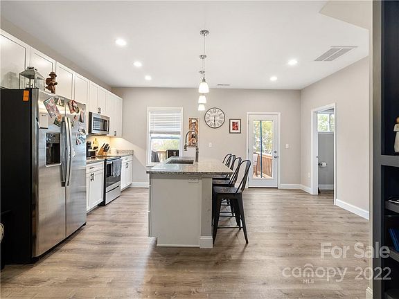 Like new construction located in the heart of Canton. This almost new, contemporary 3 bedroom, 2.5 bath home is conveniently located to downtown Canton and only a short 20 minute drive to Asheville! Master on Main with walk-in closet, master bathroom with dual vanity and custom tile shower. Second level features 2 big bedrooms, Large Bonus room for work or play, full laundry room and bath. Enjoy the mountain views from the back porch and the fenced in back yard for your furry friends. Perfect for year round living or a short term rental. Close to all of Canton's community activities and a quick drive to Waynesville and Asheville.