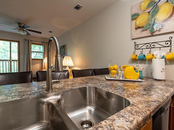 This lovely fully furnished WALK-IN level condo is located in close proximity to Silver Dollar City and Indian Point Marina. This could be an ideal option for a vacation rental investment or your own personal retreat. The owners have taken much care to create a comfortable and well-appointed living space, having conducted a recent remodel throughout. Within the past 6 years, they have installed new HVAC and a water heater, along with brand-new appliances, flooring, and countertops. The primary bathroom has been transformed with a luxurious, custom walk-in shower. They have also installed new interior and exterior doors, and the property includes a front-load washer and dryer. The powered vibrating recliners and a gorgeous leather sleeper couch are perfect for relaxation or accommodating additional guests. Situated against a picturesque, wooded area, the property's back deck offers a serene setting for relaxation. The Notch Community offers hiking trails, 2 pools, playground, picnic area, and catch & release pond, all within easy reach. Monthly dues include cable, sewer, and trash services. Notch Estate Condos is where comfort, convenience, and leisure combine for your very own retreat in the Branson area.