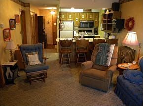TURN KEY, WALK-IN, END UNIT, Nicely Decorated, FULLY FURNISHED, very clean & ready to move into. NO STEPS. Park next to unit, which Sleeps 8. Secluded complex, yet GREAT LOCATION! Close to Silver Dollar City, Lakes, Walmart, Branson Shows and Attractions. Condo complex has 2 pools, picinic areas & playground area, walking trails & small private lake stocked with fish. There is also a bldg. set up for large groups up to 60. Laundry closet has stack washer/dryer. All you need is your toothbrush and clothes to enjoy your Vacation.