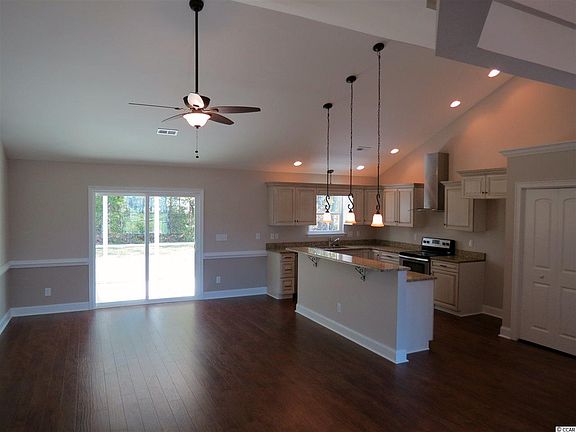 This 3 bedroom 2 bath home shows the attention to detail that you see from few builders anymore. The kitchen has custom cabinets built by the builder, granite counter tops, glass range hood, stainless appliances and a breakfast bar. Living room and formal dining room have trim work that you expect to see in homes twice the price of this one. Master bedroom has two walk in closets, tray ceiling, ceiling fan, separate vanities in the bathroom as well as separate garden tub and shower. Guest bedrooms are both 12 X 12 and have ceiling fans in each. Home also has covered porch that could easily be screened. Neighborhood has pool, clubhouse and walkway down to the Waccamaw River. All square footage is approximate and not guaranteed. Buyer is responsible for verification.