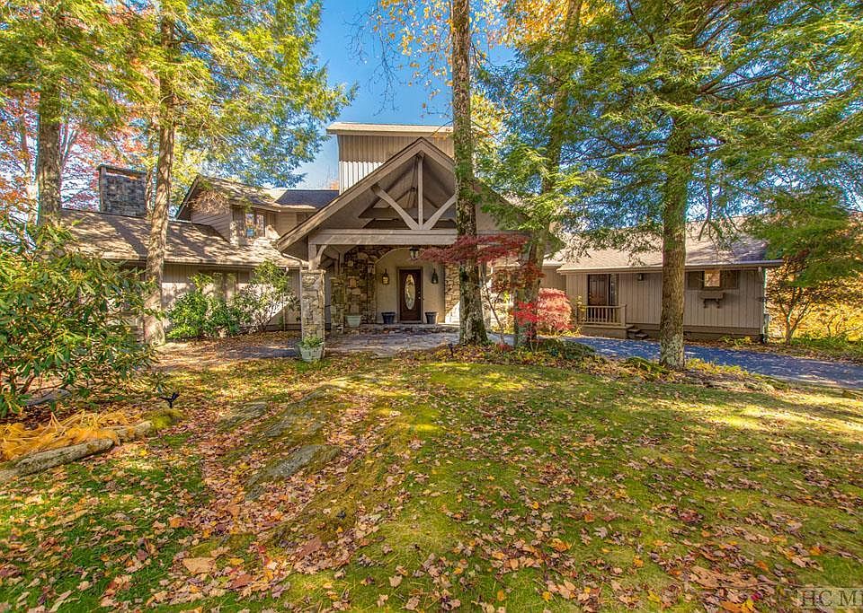 This lovely home is located in prestigious Wildcat Cliffs Country Club. With great curb appeal and panoramic VIEWS of the lake, mountain and golf course, this is a true mountain chic home! Enter to view a massive stone fireplace, hardwood floors and vaulted ceilings that make you want to relax with a good book and glass of wine or venture out to a large deck to breathe fresh mountain air and be mesmerized by the views! The huge master suite on the main floor is complete with a fireplace and HIS and HER separate and UPDATED baths! Another bedroom on the main floor in a separate wing is ideal for friends and family members who don't like stairs! Upstairs are 2 additional bedroom suites and an office area. An upper level crow's nest with fabulous views and great natural light is perfect for an artist or card room complete with a wet bar! For those who love a game of pool, down the deck stairs is a pool room! A large porte cochere keeps you dry and there is a separate golf cart garage. This a great location between Highlands and Cashiers so you can enjoy the best of both towns with fabulous restaurants, great shopping, bands at the Village Green in Cashiers or the Kelsey Hutchinson Park in Highlands, catch a show at the Highlands Playhouse or be entertained at the Performing Arts Center...the best of both towns awaits you! Membership is required and it is a wonderful and friendly club with an excellent golf course, fun croquet, great fitness center with a lap pool, tennis courts and pickle ball! Come and explore the best of the mountains!