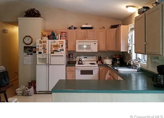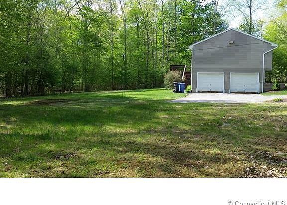 Open Sunday 10/18 11-1. Such a wonderful location for this raised ranch set on 2 acres with a nice combination of woodland and open space. Conveniently located across from Chaplin Elementary School, yet visitors may miss the house since it is so privately set. As you enter the living room a first reaction is "Wow! This is really pretty". The floor plan is open, airy and sunlit with cathedral ceilings. The kitchen sparkles with new stainless appliances and the dining area patio door opens to a deck and natural views. Two full baths, one off the master. Easy to heat with a separate zone for the bedrooms. The lower level is partially finished with a wainscoted family room and another room perfect for your home office or den. Naturalists will love the location just 2 miles from Diana's Pool with fishing and hiking. Less than 5 miles to Mansfield Hollow State Park offering boating, picnicking, open walking paths and even more trails. A lot to offer at $220,000.