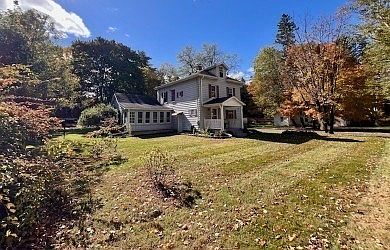 This stately early 20th century home is beautifully sited on a large grassy lot dotted w mature trees & ornamental shrubs. The welcoming front porch opens to a bright foyer w open staircase and an open living/dining area filled w natural light. Arched openings add warmth & charm to the centrally located kitchen which also leads to the addition featuring a delightful sunroom & a secluded en suite bedroom. The second floor offers a full bath & 3 bedrooms bathed in neutral colors & natural light as well as access to the walk up attic w ample space for storage. There is a full basement under the original house & the addition, and both have professionally installed water mitigation systems. The south-facing back yard provides the perfect opportunity for gardening and/or games and is highlighted by a 12’ X 16’ tree house. The location offers easy PVTA access and the trailhead to the Amethyst Brook Conservation Area is diagonally across the street. This is a wonderful place to call home!