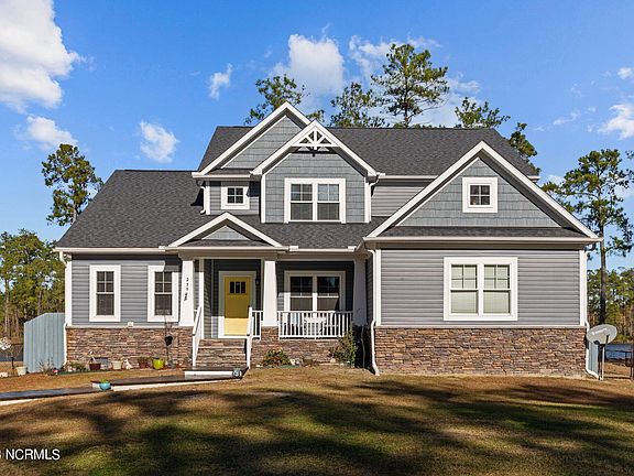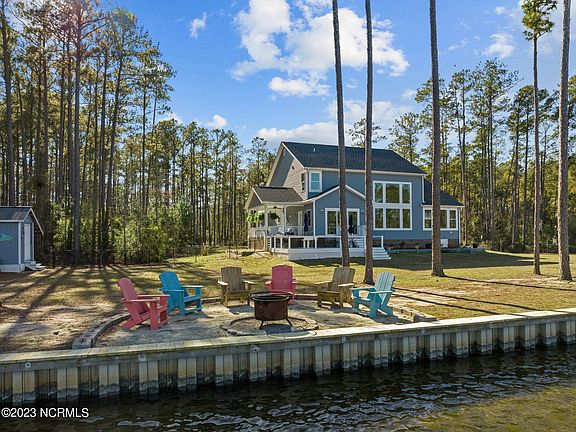 COASTAL DREAM HOME WITH PRIVATE PIER & BOAT LIFT! Completed in 2019, this stunning 3 BD/2.5 BA beauty overlooks the peaceful waters of Satterthwhaite Creek w/ easy access to the Pungo River & the Intracoastal Waterway! Nestled among the pines on 3.93 acres, this home is situated in the private Crosswinds West subdivision conveniently located to Belhaven, ''Beautiful Harbour,'' & Historic Bath-North Carolina's Oldest Town (Founded in Circa 1708)! Features include a rocking chair front porch, inviting foyer, half bath for guests, formal dining room (currently used as a study), & a spacious living room w/ soaring ceilings & a two story bank of windows to soak in the water views! The open concept layout offers a large kitchen w/ lots of counter & cabinet space, granite counters, tile backsplash, an island w/ room for barstools, & a walk-in pantry! Start your morning w/ coffee at the breakfast nook while enjoying the wildlife along the creek! Laundry & mud room area w/ built-ins! Tucked away on the main level, the relaxing primary suite offers unbelievable water views, vaulted ceilings, an attached bath w/ two sinks, a soaking tub, tile floors, a walk-in tiled shower, and a HUGE walk-in closet! On the main level, you'll also find an unfinished bonus room (originally planned as an attached garage) that is an additional 412 sqft not included in the heated sqft- perfect for future expansion of additional living area, an in-law suite w/ separate entry, or keep as storage! Upstairs, you'll find a loft with lots of possibilities, two guest bedrooms, and a jack-n-jill full bath! Imagine your evening cocktails on the covered porch or your summer BBQ's on the large rear deck! Lots of room to roam in the fenced-in backyard, fire pit area by the creek, and storage shed! Detached 20x30 metal outbuilding! Don't miss your own private pier with boat lift! Protected shoreline with vinyl bulkhead! High speed fiber optic internet! The perfect spot for fishing, kayaking, boating & more!