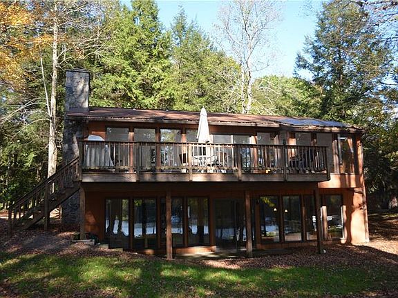 Great location for this waterfront home with approx. 100 feet of waterfrontage. The open floor plan with a wall of windows provides great lake views & the stone fireplace great ambiance. The sunken wet bar area in the lower level is part of a spacious family/game room with a 2nd. fireplace. With 6 bedrooms and 4 baths, this home can accommodate many and also has good rental potential. Great lake location and a level lot make this a desirable waterfront property!