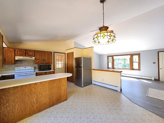 Exactly what you have been waiting for, single level living in this ranch style home with 2.78 acres of land giving you room to enjoy outdoor activities and green space. There's an AG pool, and a separate storage shed on the property. This home offers 2 bedrooms, 1 full bath, eat-in kitchen with peninsula, raised panel cabinets, range and refrigerator, living room with vaulted ceiling, brick hearth and wood stove, Walk-out basement with daylight windows; laundry in the basement includes the washer and dryer. There is a lovely 3-season porch. Showings start Saturday September 7, 2024 10am - Noon.
