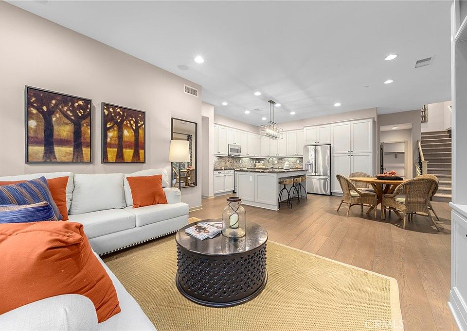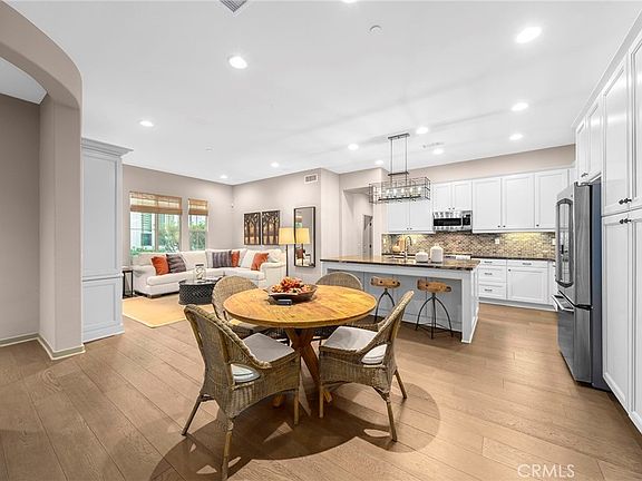 Highly upgraded Model Home with four bedrooms, three bathrooms and a roomy loft. This model home features upgraded built in cabinetry, kitchen appliance, wallpaper and upgraded flooring throughout. The kitchen features an over sized island, with quartz counter tops and upgraded back-splash. The bathrooms feature multiple upgrades including floor to ceiling stone in the shower, beveled mirrors, upgraded counter tops and tub decking. The outdoor living area is complete is pavers and a water feature. Too many features to list, this model is a must see with all the furniture and staging including! Camden Square is a gated community comprised of pool, spa, BBQ, Playground, a tot lot and a recreation center. It is located conveniently two mins walking distance next to shopping, restaurants, entertainment and easy access to freeways to get the best private school in OC.