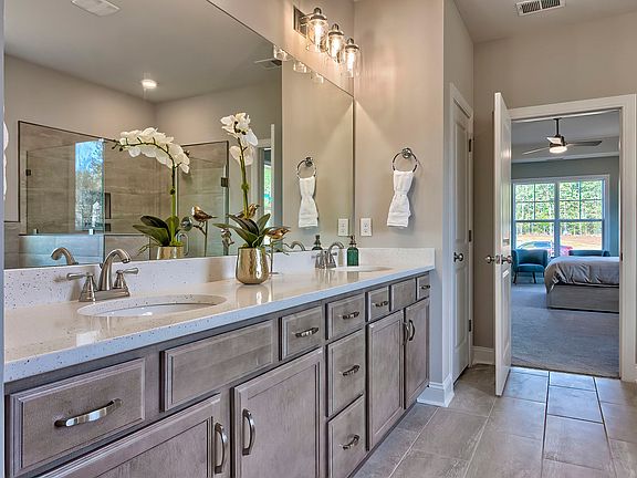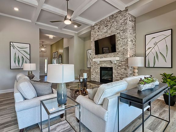 The popular Ransford floor plan provides main floor living at its best, with an open concept layout perfect for entertaining friends and family as well as a spacious back deck on the rear. The sleek and stylish gourmet kitchen is complete with a large kitchen island and designer finishes. The primary suite is the ultimate retreat finished with an elegant bathroom with tile floors and a seated tile shower. Step upstairs to enjoy a huge flex room, perfect for any man cave, playroom or fitness area and an attached bedroom with full bathroom. If the inside of this home still isn't enough...kick back and relax outside and enjoy the views of the common area with plenty of nature surrounds. Photos used are for illustrative purposes only.
