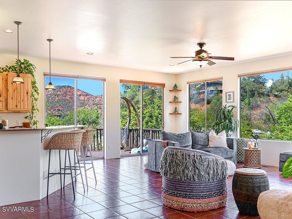 Lovely, beautifully appointed, spacious, and marvelously well-maintained Southwestern Contemporary home in a quiet neighborhood nestled at the end of a verdant cul-de-sac. Its over-sized windows and open floor plan give it a welcoming bright and airy, yet comfortable, feel. The clean design is complemented by upscale finishes, featuring porcelain floors, solid hickory cabinets, granite counter tops, beaten copper sinks, and bronze hardware. The Trex deck off the living room invites you to linger and enjoy the red rock views and sunsets. The main living quarters are all on one level. An 840 sq. ft. lower level with a private entrance provides the potential for an in-law-suite, office or exercise facility. U.S, National Forest is just steps away. Located a mile south of the 'Y.' The home has been fastidiously and lovingly maintained. In 2018, the stucco was refinished, the interior and exterior were painted, a rock wall was rebuilt, and the roof was recoated with 4 coats of Elastomeric.