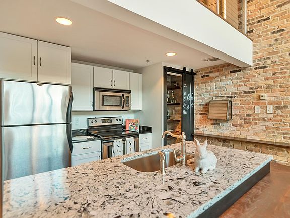 A One-of-a-kind Loft w/Private Entrance & No Neighbors on Either Side. Located on the Top-Floor of the Historic Kress, the Loft features a Private step-out Balcony, Tall Ceilings w/Sealed Exposed Brick, Designer built-in Brick Fireplace, Luxe Light Fixtures, Solar Shades, Quartz Countertops, Built-In's in ALL Closets,Recently Renovated. 2-Reserved Parking Spaces. ALL Furniture is negotiable. Furniture designed by John Richard Collection. NO STRP's allowed. Long Term Rental is Permitted.