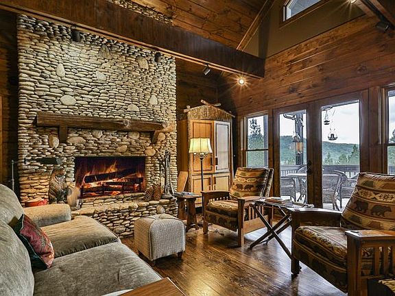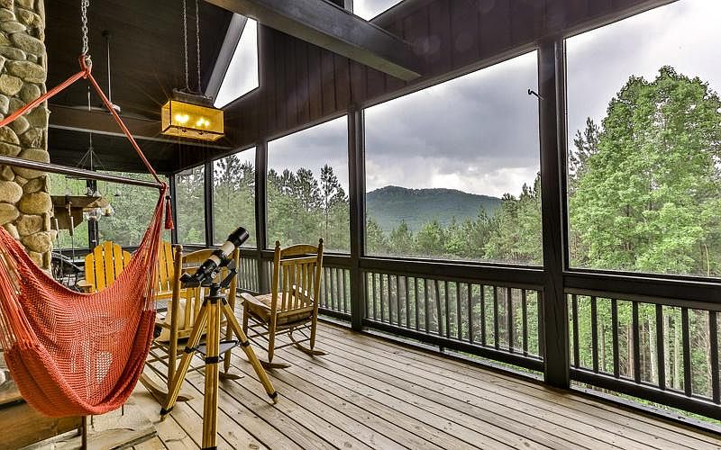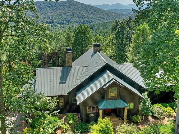 A short drive north of Atlanta brings you to Ellijay, the heart of Georgia apple country. "Bear Vista",designed by Charles Gandy, reflects organic colors of the surroundings:deep mocha house inspired by wet pine bark, red and gray interior reminiscent of the fall leaves and Georgia granite.The interior reveals space devoted to large gathering rooms, oversized screened porches for great views of distant mountains & lush terrain. Massive cedar tree trunks welcome you at the front door. When entering, the eye is drawn to the large lodge type open family room, stone hearth and chimney, spacious dining area, tv area & the magnificent views. 2 primary suites on main level, and multiple bedrooms, family room, game room on lower level.Great outdoor living w/ outdoor fireplace. Gated community w/wide paved roads, underground utilities. This home is a treasure. A spectacular property.