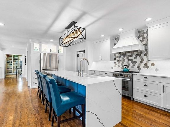 Stunning Colonial on sought after River Street. Thoughtfully updated, gorgeous custom designed kitchen with waterfall quartz island, glass front lighted cabinetry and a walk in pantry. Timeless design and an engaging open floor plan provide plenty of space for entertaining and everyday living. Two story family room with beautiful wood burning fireplace and amazing natural light. Spacious office with built-in bookshelves. Dining room for holiday gatherings and separate living room for quiet moments. The second floor offers a primary suite with soaring ceilings, two walk in closets and an en suite bath. Three additional bedrooms, a full bath and laundry room complete this floor. Finished third floor can be an office, media room or playroom. PLUS impeccably finished basement with living room, wet bar, bedroom and a full bathroom with steam shower. Back yard oasis featuring a new heated gunite pool and hardscaping. Whole house generator. This home has it all!