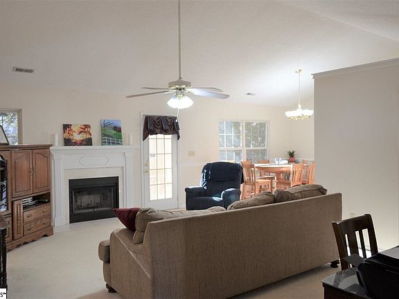 LOCATION! LOCATION! LOCATION! within minutes of interstates, airport, shopping, and parks in addition to being zoned for the sought after Riverside School District! This open split floor plan design offers nice spacious main living areas with a nice updated kitchen and more situated on a nice private, exterior lot providing a wooded backdrop! Low maintenance comes to mind as you drive up to this ranch home featuring vinyl siding, trim and thermal vinyl windows! A front covered stoop welcomes your guests and unlike a lot of ranch open floor designs, a foyer, accented by parquet hardwoods, separates the front entry from the main living area. Upon entering the Great Room you will note neutral carpeting, a soaring cathedral ceiling and a wood burning fireplace - providing a nice secondary heat source! Lots of space to accommodate larger furnishings and no cramped space when entertaining. Just off the Great Room you will find the eat-in Kitchen where the breakfast area offers a windows overlooking a tranquil and private backdrop. The adjoining main kitchen is updated with newer white custom cabinetry, a built in pantry, granite counters and updated white appliances. The Kitchen and breakfast area offer newer hardwood flooring! Two nicely sized secondary bedrooms are located on one side of home with neutral carpeting and good closet storage. In the hall among these bedrooms you will find a full bath offering a tub/shower, sink vanity and toilet along with a full laundry room! The spacious main level master is located to the other side of the home with views of the private backyard. Additional features of this bedroom suite include a walk-in closet and private bath offering a dual sink vanity, separate shower, garden tub, toilet, linen closet and newer vinyl flooring. And if all of this wasn't enough, check out the back deck and private, fenced backyard. A great space for all of your outdoor entertaining needs. Enjoy the tranquil feeling of overlooking a wooded backdrop unlike homes located on interior lots backing to other homes. The fenced backyard also provides an additional benefit and cost savings for buyers with children and pets. Nice upgrades and features to appreciate: custom kitchen cabinets, granite counters, updated appliances, wood floor in kitchen/breakfast room, new vinyl floor in master, new architectural shingle roof and gutters, insulated garage door & opener plus keyless entry, moisture barrier, ceiling fans in all bedrooms, 2 linen closets, laundry room and more! Additionally, the Riverside Chase community offers storage for your boats, campers, etc. in a fenced area just off site. So many wonderful features offered with this home at a great price. Don't delay- make an appointment to tour this lovely home today! If SF is important - verify for accuracy.
