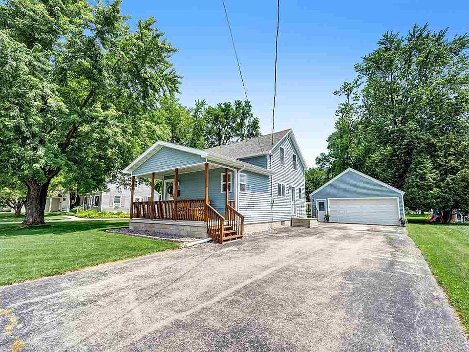 There's so much to love about this beautifully finished 3BR/2BA Kaukauna home! This house is completely move-in ready with a great open-concept floor plan. Enjoy the covered front porch perfect for sipping morning coffee. Walk in and find tile hardwood floors that lead you into the kitchen area which flaunts white cabinets and breakfast bar with stools for additional seating. Both bathrooms are quite spacious with upper including double vanities and 2nd floor laundry. Sliding doors off the living room bring you to a roomy yard complete with a deck as well a 2.5 stall detached garage.
