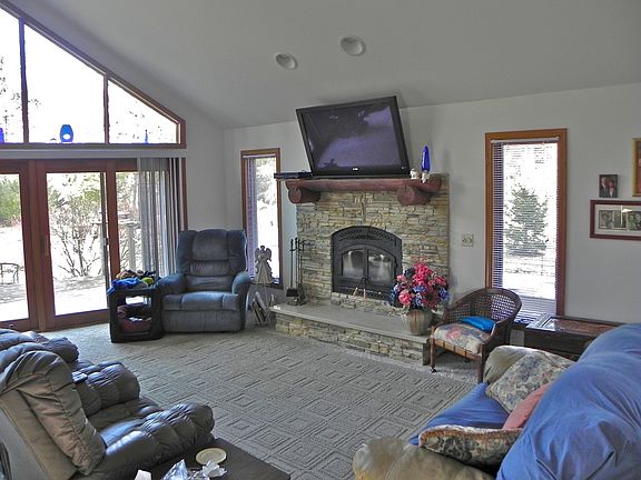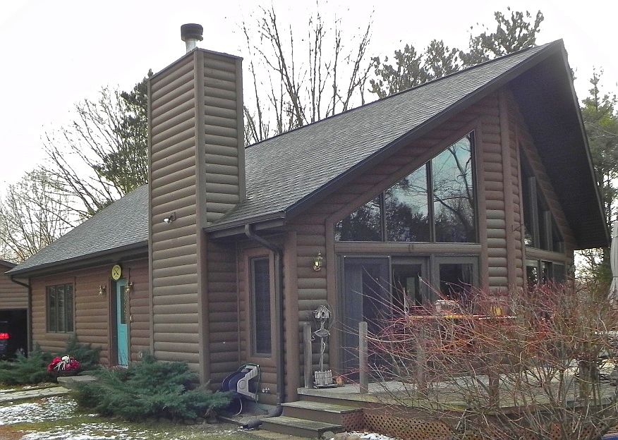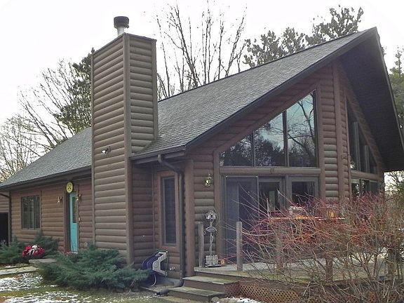 A lovely log sided home with 1.7 acres located just 45 minutes north of Madison. 8 year old 2 bedroom/1 bath, 1196 sq.ft. home with vaulted ceilings and an open floorplan. Tile and carpeted floors, beautiful stone wood fireplace (pretty much heats the whole living space in the winter), and huge picture windows that overlook a large deck and woodland area. 3 car garage, fenced in backyard, with many perennials and apple trees planted. Full basement. Wildlife is abundant and Wolf Lake fishing is just a few blocks away! Property is 3 minutes from Oxford, WI and 15 minutes NE of WI Dells. This would make a perfect vacation home getaway or year round home for someone in the area. Living Room is 27'2" x 15'8". Kitchen is 11'1" x 9'5". Dining is 11'8" x 9'5". Master Bedroom is 17'3" x 13'5". BR2 is 12'4" x 11'5". Neighborhood Description Private, little traffic, safe, Wolf Lake close by.
