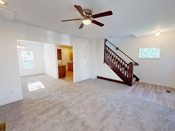 This newly renovated 3-bedroom, 1-bath single-family home is move-in ready and full of charm. The first floor features a welcoming living room, a spacious dining room, and a galley-style kitchen with brand-new cabinets. Upstairs, you'll find one large bedroom and two smaller bedrooms, along with a fully updated bathroom with modern finishes. Fresh paint and new carpet run throughout the bedrooms and living areas, creating a clean and cozy feel. Relax on the covered front porch or enjoy the spacious yard. Conveniently located near parks, schools, shopping, and just a short drive to downtown Columbus, this home offers modern updates with everyday comfort