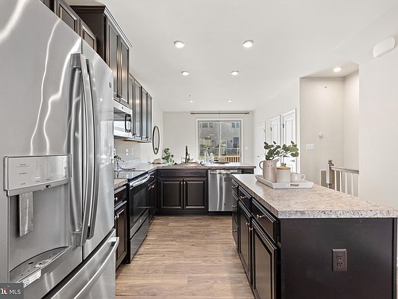Updated newer construction (2020) in quiet and private Oldham Crossing. The main level entry foyer is greeted with a full bedroom and full bathroom. The sun soaked main level is ideal for entertaining with open sight lines from the living room to kitchen and dining area with a half bathroom and access to the rear composite deck! Freshly painted, 9' ceilings, 42" cabinets, stainless steel appliances, breakfast bar, and huge center island. Upstairs offers a massive primary bedroom, walk-in closet, en-suite primary bath with dual vanity sinks and dual headed shower. Through the hall you'll find the stackable laundry, and 3rd spacious bedroom complete with a walk-in closet and full bathroom. Spacious balcony over looking the community is a perfect place for a cozy morning coffee or weekend hang out. The oversized garage has tons of extra storage space and the full size driveway gives you a second parking spot. Smart home features include Nest thermostat, door bell, and Yale smart locks. The community offers a dog park, tot lot, and is conveniently located near commuter routes 895,95,695 with a short drive to Yard 56, Canton Crossing, and Fells Point.