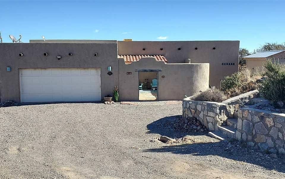 Southwestern Style home on a full acre of land. Sitting back from the road , down a long driveway taking in the gorgeous view , this home is a little sanctuary in Silver City NM. This 3bd 2 bath home is spacious and open! Beautiful Granite counter tops sprawling over the huge kitchen island. Custom features throughout, kiva style fireplace with a pellet stove insert, New 2020. The Master bedroom is a relaxing dream with wood accent wall, with inviting warm color, wood floors. The courtyard in the front of the home is its own little piece of paradise but the views off the back porch are a dream a must see. Seller has great style and has put her own special touch on the home.