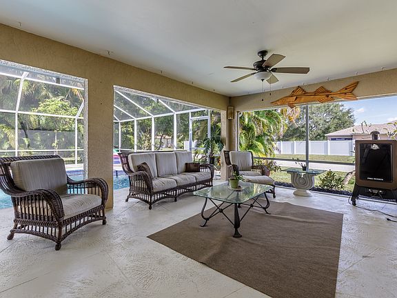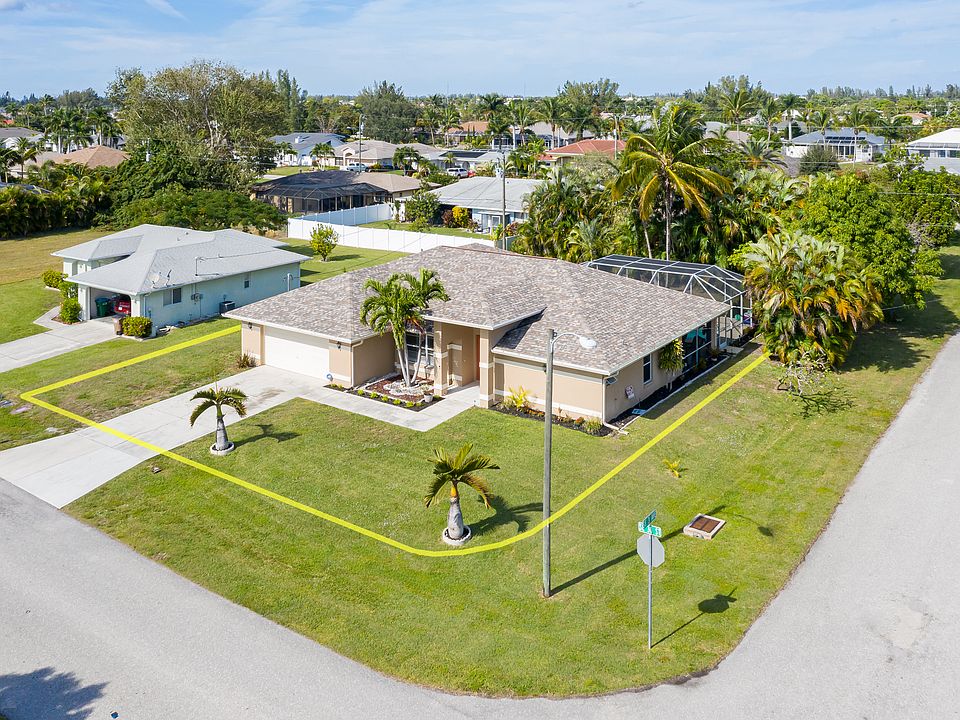 Don't miss your opportunity to own this amazing property! Home has a 3 year old roof, new Rheem water heater, updated kitchen with granite and stainless steel appliances, freshly painted interior, ceramic tile, 5 1/4 baseboards and some crown molding. Both bathrooms are currently being updated a long with new laminate flooring in bedrooms. The AC has recently been serviced, all assessments have been paid. The house is close to midpoint bridge and only 12 mins from downtown Cape Coral. Home also has a pool, cathedral ceiling, new fan in living room, plantation shutters on front windows and 2'' blinds throughout. Updated granite in baths , mature mango tree, oversized garage big enough for a boat and a car, corner lot, cabinets in garage. Open floorplan, freshly painted lanai 8/27/19, new smart garage door opener and it has been freshly re piped with new water lines and valves.