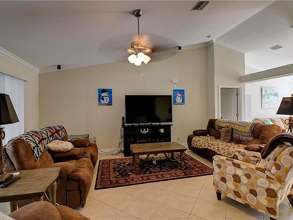 This gorgeous fully renovated pool home, on a fresh water canal, offers amenities to please the masses. The large lanai (cage replaced in 2019) features an oversized pool, with a heated spa on one end and a similar area at the opposite end for younger children. Both of which overflow into the pool to create a unique water feature. The lanai has plenty of shaded area also when it's time to beat the heat. Behind the pool there is also built-in decorative landscaping. A bathroom to the left of the pool serves as the pool bath, as well as, the guest bathroom. An electric pool heater was added to the property in 2017. Some of the amazing exterior features include; tile roof, 2 car garage with storage space, and an automatic garage door opener, and a paver driveway with paver walk way. The interior provides; tile floors in the common areas, carpet in the 4 bedrooms, granite countertops, indoor laundry room, and crown moulding throughout. The extended master suite has a coffered ceiling and a walk in closet. The master bathroom features a jetted garden tub, separate shower, and his and her sinks with granite countertops. This gorgeous split bedroom home is a must see!!!