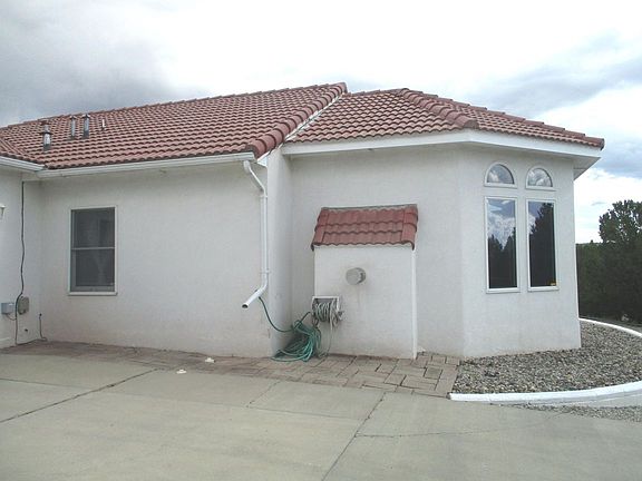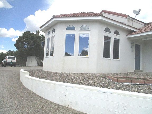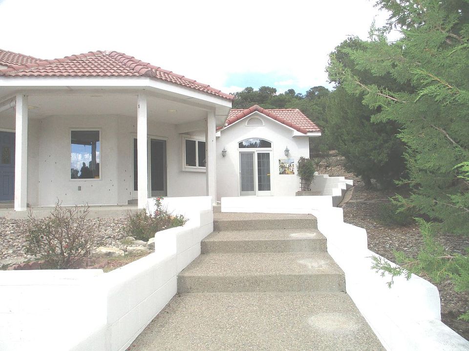 This lovely home has a distinct Mediterranean look but is nestled among pinons on a heavily wooded 2-acre lot. White exterior, red tile roof, lots of beautiful curved windows in the living room lovingly frame the Sandia Mountains. Chef's kitchen, terrific covered patio for outdoor entertaining. Some of the pictures show what the previous owners did to decorate the outside with flowers but those are not currently on the property. Large garage with workshop area, storage shed, small shrine outside for quiet meditation.