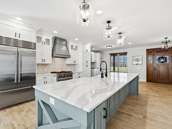 WITH SEPARATE LIVING QUARTERS, INGROUND, HEATED POOL, 4 HOLE PUTTING GREEN ALL SUTUATIED ON 3 ACRES! No detail has been over looked on this amazing all brick home. Inviting open floor plan that is perfect for large gatherings. Main level dream kitchen boast quartz counter tops, Wolfe gas range, Sub-Zero Refrigerator, Cove microwave & dishwasher, large island, huge pantry and laundry room (washer & dryer convey). New Trex Deck that spans the entire back of home. Master Suite has private access to deck, large walk-in closet with custom closet system. Beautiful Master ensuite with large tiled shower. Second bedroom has attached ensuite! Large third bedroom and guest bath complete the main level. Additional living quarters downstairs with private covered patio entrance offers large living room, dining area, full kitchen, large flex room that could be possible fourth bedroom with built-in shelving, large walk-in closet with custom closet system, full bath and washer/dryer that convey. One car attached garage with new epoxy floor. Party all year round in your heated, salt system 16x40 inground pool with covered outdoor kitchen complete with grill, sink, refrigerator and built-in cooler. 4 hole putting green and hot tub complete this outdoor oasis! Large 40X40 detached 5 car garage with new epoxy floors, electricity, plumbed for water and large upstairs storage area. Perfect for boat, cars and other toys. Two additional outdoor parking places for an RV. One has electrical hookup. Located just 5 minutes from Sequoyah Marina and 10 minutes from I-75. Buyer to verify all MLS information including Sq. footage, acreage and restrictions.