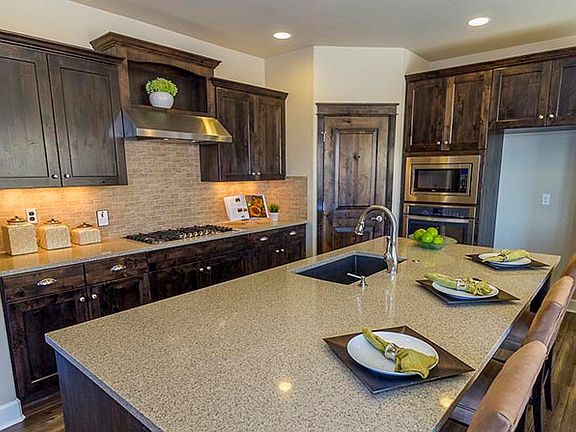 Featuring the Watercrest model by award winning Pahlisch Homes. This 2,180 square foot 3 bedroom, 3 bath, gorgeous Stucco home features; single level living, open vaulted great room, guest suite off the entry and formal as well as casual dining areas. The breathtaking master bedroom is highlighted by coffered ceilings, a huge walk-in closet, large sliding glass doors opening to the covered patio, soaker tub and separate shower. The upgrades and finish work in this home are endless and include 10' (or more) ceilings throughout, 3 car garage with key-less entry, Santa Fe hand texture, under cabinet and canned lighting in the kitchen and living areas, custom "Shaker" style stained Knotty Alder cabinets, decorative crown molding, Engineered Wood Flooring, tile flooring in the bathrooms and utility room, upgraded carpet, solid surface Quartz counter tops in kitchen and bathrooms, laminate counter top in the utility room and front yard landscaping and irrigation.All of this in the North Hills/Skyridge subdivision. This is a must see home that will not fail to stun you with its endless amenities and high end finish work.