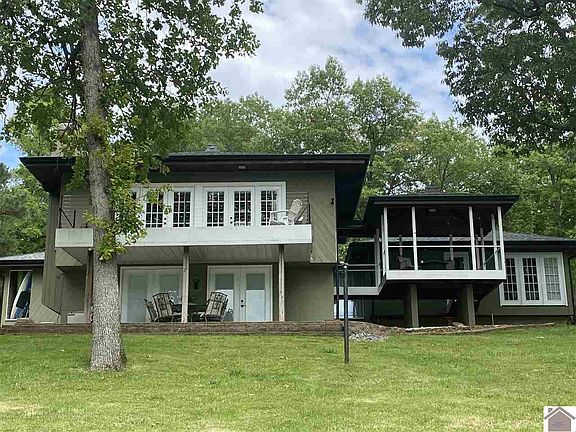 Beautiful KY Lake Home- 239 Smokestack Lane Point lot with Paved driveway that is gated. Year-round water with a gentle slope. Private covered dock 34x30-slip with a 6000lb lift. House has lots of character and is very unique with beautiful wood, vaulted ceilings and an open living concept. Great master suite and bath. Most everything in the home has been updated including top of the line appliances, new kitchen and granite countertops with charging USB stations. Great views - Upper Deck & Lower Patio - Attached 2 Car Garage - Detached 40x60 building/shop with 16x10 Door and Heat & Air. Whole house and shop generator. Very Private with all new retaining wall. Allow plenty of time to view because you WILL NOT want to leave! $999,900