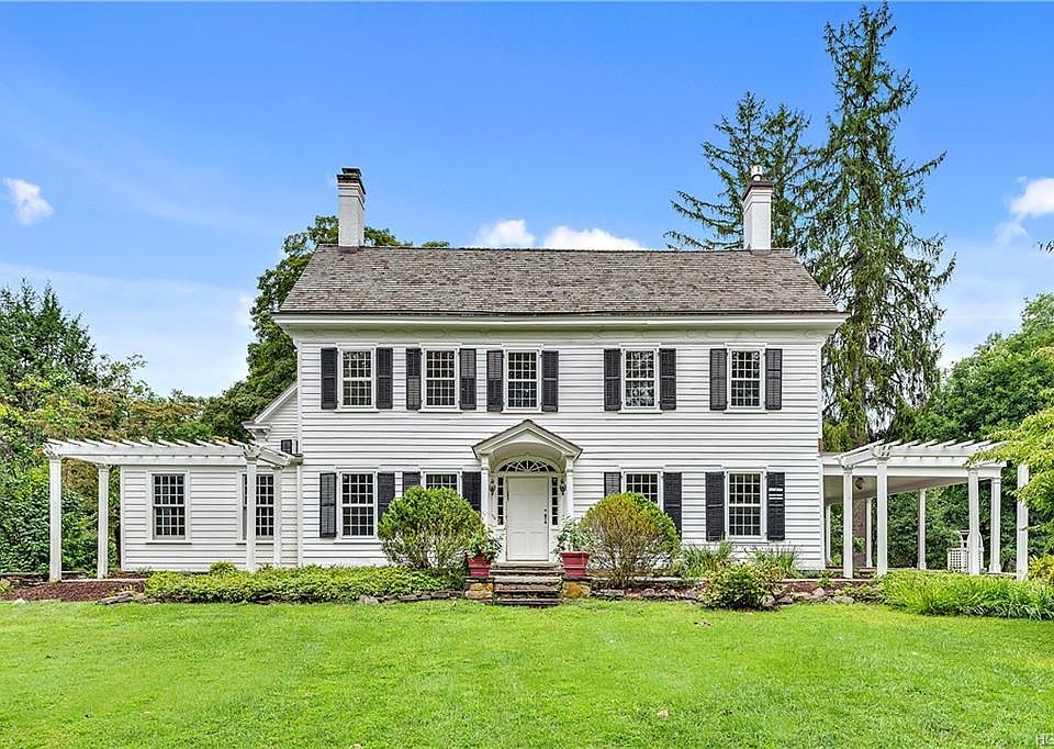 Circa 1850 Center Hall brimming with period details: parquet floors, five fireplaces, French doors and exceptional millwork. Recently renovated, approximately 5600 square feet of living space. Formal Living Room with Fireplace and French doors to covered porch perfect for afternoon tea. Dining Room with French doors Sun Room. Country Kitchen. Five Bedrooms including private Master Suite. Four acres in the heart of Guard Hill across from Bedford s historic Clock Tower. Detached Four Car Garage with Apartment. A rare opportunity!