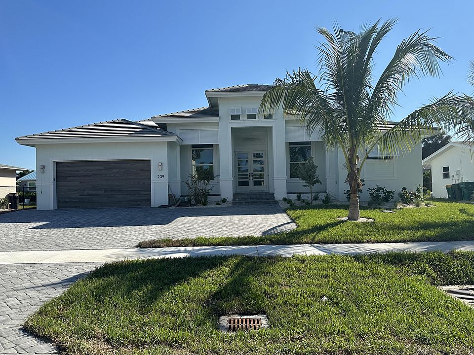 This beautiful, coastal contemporary, brand new home is full of upgrades. The modified Captiva floorplan, built by FCI Homes includes 4 bedrooms, 3 full bathrooms, large great room, kitchen and dining area overlooking the pool and spa and has a 2-car garage with over-sized driveway. This home boasts high ceilings, 8'&10' tall sliders, large impact windows, outdoor summer kitchen, and covered lanai. This property also comes with a 1000-gallon propane tank and 22KW generator. The bright, open concept design includes upgraded kitchen cabinets, quartz countertops, large island, walk-in pantry, and tile flooring throughout. The owner's suite has 2 walk-in closets and separate vanities. This beautiful property is located just minutes to the white sand beaches of Marco Island, parks, tennis and pickle ball courts, golf, shopping, dining, schools, and the YMCA.