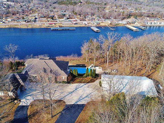 SPECTACULAR LAKE VIEWS - STUNNING CUSTOM HOME - 6AC LAKE FRONTAGE - 40X60 OUTBUILDING - OUTSTANDING LOCATION - this one has it ALL! Only 5 minutes to the nearest shopping center and 10 minutes to Branson Landing! This custom-built home has all the bells and whistles and has been beautifully maintained. Wide open elegant spaces features walls of windows welcoming lots of natural light and views unlike any you've ever seen! Watch bald eagles soar by your window (yes, really!) over beautiful Lake Taneycomo below. You're going to fall in love with the enormous well-appointed kitchen, the elegant master suite, guest suites, and ample entertaining space upstairs and down. Splash into the in-ground pool and enjoy hobbies or house your RV in the adjacent outbuilding. There's just nothing like it!