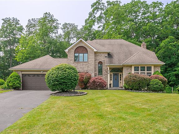 Welcome to this stunning contemporary home boasting 2100sqft of living space, 3 bedrooms and 2 1/2 bathrooms. You'll be captivated by the charming brick façade, which exudes timeless elegance. The meticulous landscaping adds to the overall curb appeal, creating an inviting atmosphere for you and your guests. Step onto the gorgeous back deck, and you'll discover a tranquil space perfect for relaxation or entertainment. This expansive tiered deck leads down to a hot tub, providing a perfect retreat to unwind after a long day. The wooded backdrop of Seneca Park offers a sense of seclusion and privacy, and the Seneca Park walking trail only 1/4 mile away affords nature lovers the chance to explore. Upon entering through the grand 2-story foyer, you'll be greeted by an abundance of natural light pouring in through the arched windows, creating a bright and welcoming ambiance. The thoughtful design of this home allows for a seamless flow between the living spaces, and the interior is adorned with exquisite features, including stone fireplace, beautiful tile, hardwood flooring, and recessed lighting throughout.