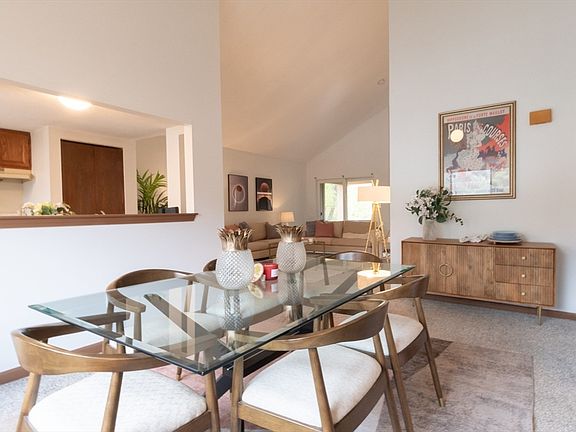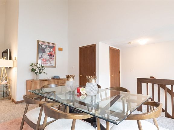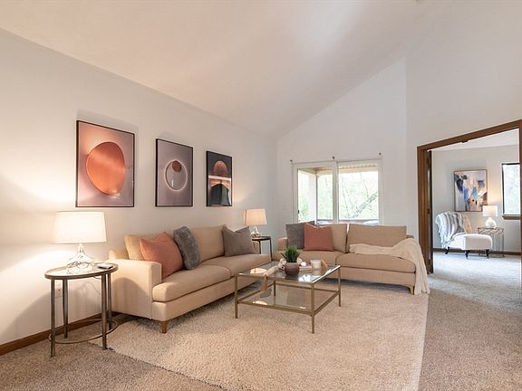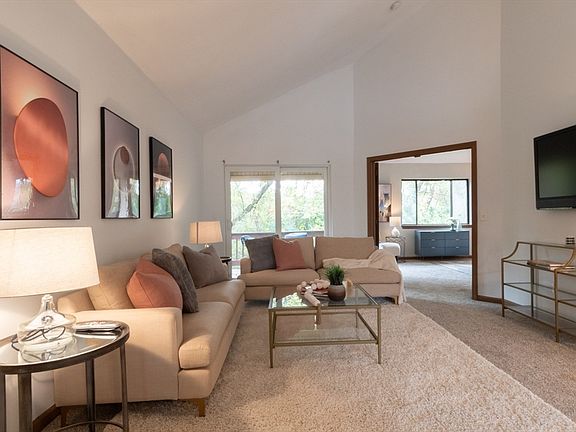Rarely available second-floor one-bedroom condo with serene privacy! Nestled at the back of the community, this charming unit offers peaceful views of the surrounding woods from the private deck. Inside, the open living and dining area boasts vaulted ceilings, filling the space with natural light. The spacious bedroom features a large window, plenty of closet space, direct access to the deck and en-suite bathroom. The kitchen provides plenty of cabinetry and a pass-through to the living area for convenient entertaining. Bonus features include a brand-new furnace and a dedicated parking garage. Perfectly located near shopping, walking trails, and parks.
