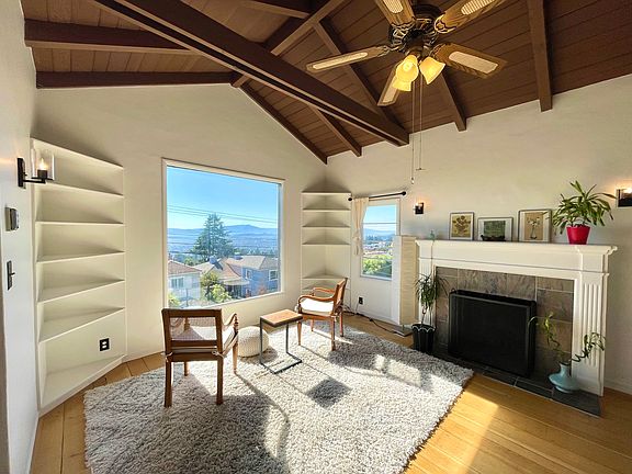 Open House on Sunday 8/3 from 2-4pm! Lovely Berkeley Hills/Kensington home with expansive views. It's zoned for the fantastic Kensington Hilltop Elementary School. Walk to AC Transit bus stop located on the same street that goes to UC Berkeley. Unit is freshly painted throughout. Both living room and dining room have sit-down views of SF and Golden Gate Bridge. Living room has a vaulted ceiling, fireplace, upright piano and a work-from-home station. Large kitchen with nook and built-ins. Primary bedroom can comfortably fit a king-size bed, attached sun room leads to the rear patio and backyard. Guest bedroom has a work station and a queen size futon bed. Updated bathroom has both a standing shower and a tub and radiant floor heating. Hardwood floors throughout the house. Laundry located in the storage room downstairs. 1.5-car garage. One-year lease preferred. Well-behaved small pets are considered with additional fee. Unit is currently furnished but open to partially furnished or unfurnished. Tenants are responsible for all utilities.