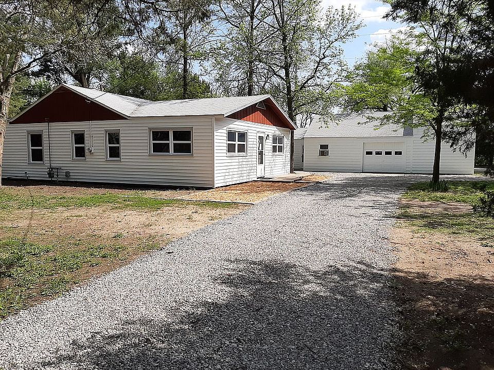 Secluded 2 bedroom Ranch on fenced 1/2 acre lot with mature trees. Home is completely remodeled with new interior paint, new flooring in kitchen, bath and laundry room. New carpet throughout. Bathroom updated with new vanity, sink and toilet. New windows and vinyl siding with warranty on both. 24 x 36 Heated and air conditioned Garage/ shop. 20 x 62 Metal building 1- 7 x 10 storage shed 1- 10 x 12 storage shed
