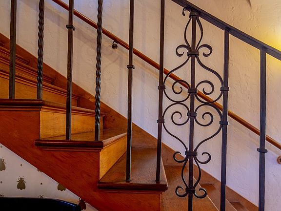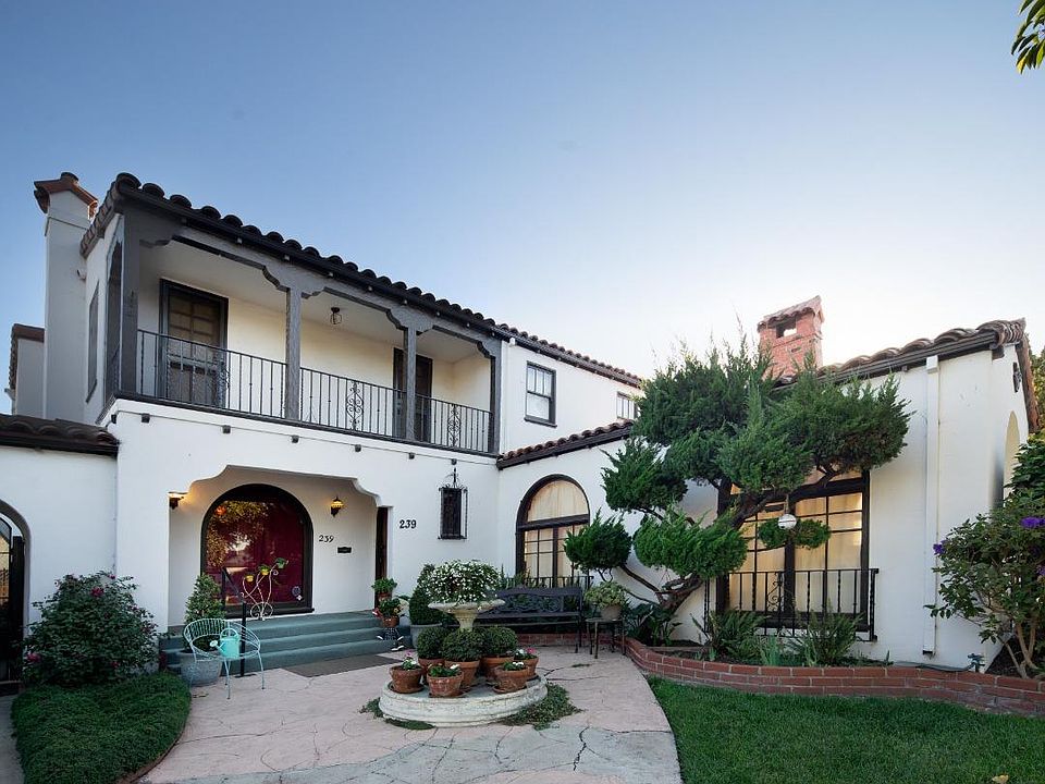 Beautiful Mix of Spanish, Mediterranean & Old Hollywood Glamour.... Rich with History and an incredibly Beautiful Love Story of how it came into existence. This Home was the talk of the town and the highly "Coveted invitation of the Day" to be invited. From the custom wrought iron hand railings crafted by a Horse Farrier to the curved floor to ceiling wrought iron curtain rods that perfectly frame the Multiple Picture windows that allow the sun to shine from the corner lot to warm & surround the Living Room & Grand Fireplace and rich Hardwood flooring. Highlighted with Unique Lighting fixtures to all of the built-in features throughout this Stunning Home. Well cared for Home & Rarely offered for Sale...Now is your chance!