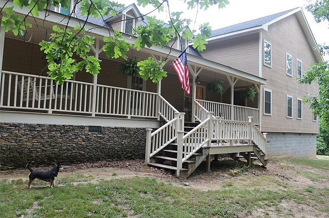 Custom built home with many extras. Split plan on the first floor with large master suite. Large addition that was designed to be a kitchen and great room with white spruce pine, and very open. Stairs lead to a huge loft that could be used for many things. Split bedroom plan upstairs with a bonus room that could be another bedroom. Very comfortable plan for a large family. Kitchen has solid oak cabinets with breakfast bar and breakfast area. Beautiful tile and hardwood floors. Rocking chair front porch, huge screen back porch that offers complete privacy. Large closets throughout. Attic storage is ample with one pull down and 3 walk-in's. 4 units which is very economical to maintain. Two outbuildings, 8 x 8, and 11 x 30. Fenced pasture, private setting.