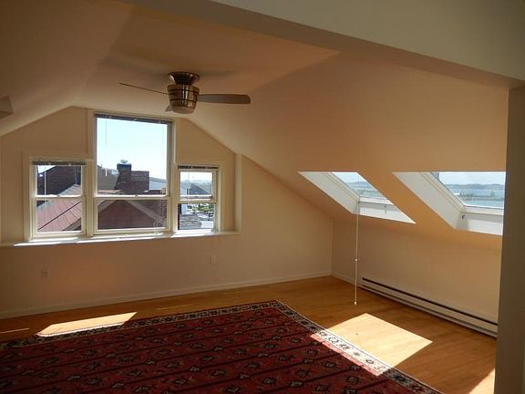 Top 2 floors in a beautiful brownstone in one of the hottest neighborhoods in Boston. Jeffries Point gem in heart of East Boston, Steps to Piers Park, Maverick T Station, and sweeping water views. Unit boasts 2 floors of living space, with a brand new renovated bathrooms, open living room to kitchen layout that offers great sunlight and million dollar views of the Boston Harbor, Seaport, and Downtown Boston. The kitchen is renovated and the top floor offers a huge master bedroom with deep closet space and plenty of storage. Wake up to amazing views of the water and downtown Boston every morning! Available 9/1.
