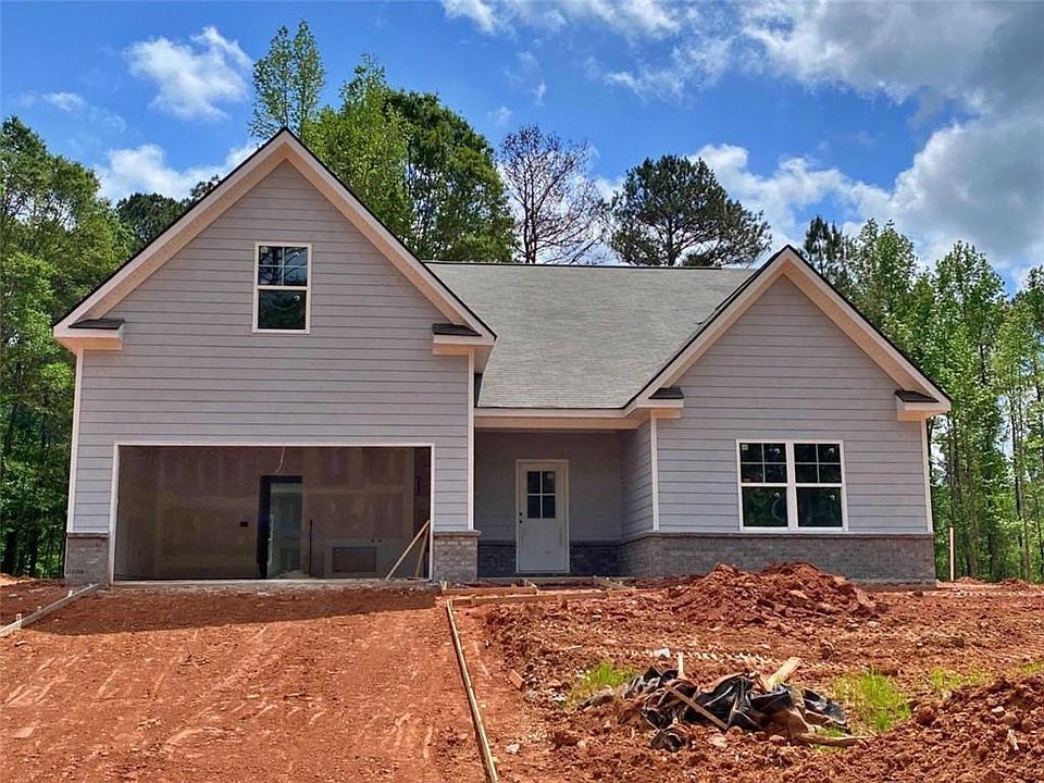 The Charlotte Plan is an open concept plan that features a kitchen island that opens into the family room. Kitchen has granite countertops and white cabinets with Stainless steel microwave, dishwasher, and range. The family has a wood burning fireplace with a slate finish. Vinyl floors in the foyer, hall, family, kitchen, laundry and baths. Carpet in the bedrooms. Home has three bedrooms and 2 baths downstairs and has a bedroom and bath upstairs. Large laundry room. Interior photos are from a similar home and not actual subject property.