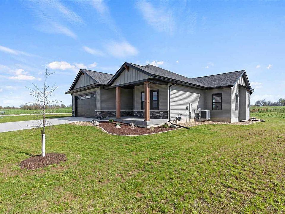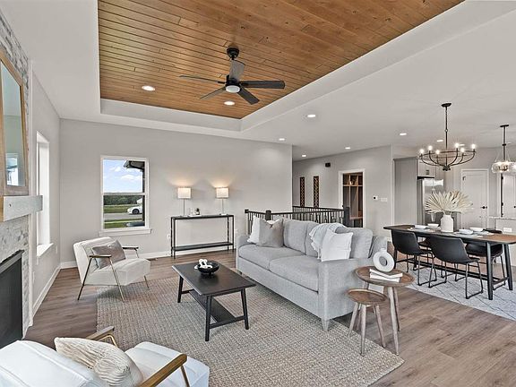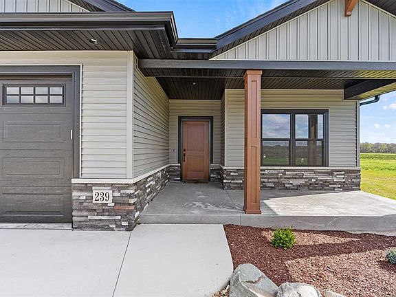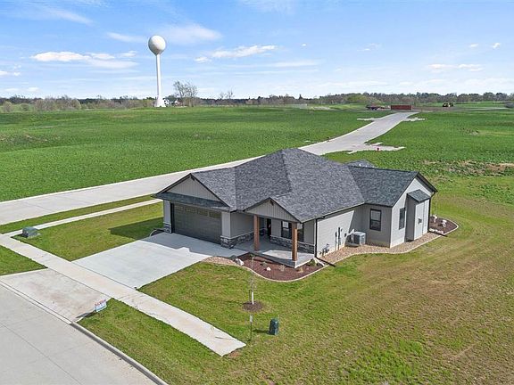 This exquisite single-family residence, built by MAS Construction, offers unparalleled quality and comfort. As you step through the front door, be captivated by panoramic views, an abundance of natural sunlight, and meticulous attention to detail. The heart of the home, the kitchen, features modern gray cabinetry, an expansive island, sleek tile backsplash, and stylish black fixtures. The dining area seamlessly connects to a spacious screened porch with a vaulted ceiling, leading to a maintenance-free deck—perfect for entertaining or simply savoring the outdoors. The expansive living room is adorned with a gas fireplace and stone surround, complemented by a modern tray ceiling with wood inlay, creating a warm and inviting ambiance. The primary suite offers a private bathroom with a double vanity, walk-in shower, and a generously-sized walk-in closet. The convenience of a large laundry room, placed just off the primary closet, adds to the practicality of daily living. Laundry room also functions as a mud room off the 2-car garage with built-in cubbies, abundant cabinetry & a soaking sink. This home boasts an additional bedroom and full bath on the main floor, providing flexibility and convenience. The lower level is an entertainment haven, featuring a sizable family room with a wet bar, two more bedrooms, a full bathroom, and ample storage space. Situated in SouthTown Area Development. This functional new construction zero-entry home invites you to relax and immerse yourself in nature. Don't miss the opportunity to experience low maintenance living—schedule your viewing today! Kalona Golf Club 2024 FAMILY MEMBERSHIP included with the purchase of this new home!