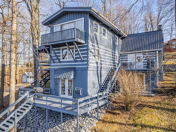 One of a Kind Log Cabin Lake House on Lick Creek! Private Covered Boat Dock with 2 Slips & Electricity. Multi-Level Decking & Patio offers Amazing Waterfront Views. 2 Story Ceilings, Open Catwalk, Exposed Beams, Stone Fireplace & Beautiful Hardwood Flooring. Eat-in Kitchen with Island. Main Level Laundry Room. Basement Level Apartment with Full Bath, Rec Room Full Kitchen & Den. 2nd Story features 2 Additional Bedrooms, Full Bath & Den with Private Balcony. Separate Storage Shed, Concrete Drive & Plenty of Parking. Furnishings are Negotiable.